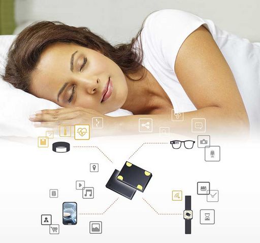 De meeste energiezuinige Bluetooth-oplossingen gebruiken twee 32.768 kHz kristallen (één voor de slaapmodus van het BLE IC en één voor de MCU-klok) en één MHz kristal als referentiefrequentie voor de BLE-chip (Fig. 3). In een typische draagbare toepassing kan een 32.768 kHz siliciumoscillator gelijktijdig de slaapmodus van de BLE en de MCU klokken. Dit bespaart enorm veel ruimte op de printplaat, want de ULPPO van 1,5 x 0,8 mm is maar half zo groot als het kleinste 32.768 kHz kristal van 1,6 x 1,2 mm en 85% kleiner dan een low-power kristaloscillator van 3,2 x 2,5 mm.