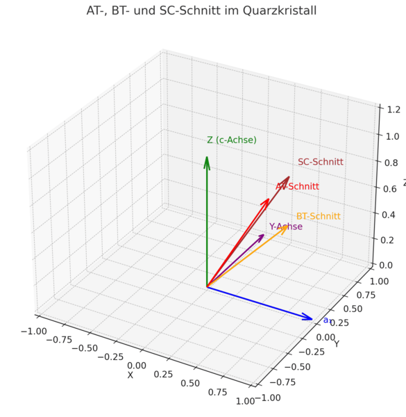De AT-sectie is een schuine sectie (ongeveer 35,25°) tegen de Z-as in het X-Z-vlak. Het wordt gebruikt om temperatuurstabiele oscillerende kristallen te produceren. De oscillatie vindt plaats in het plaatvlak (vlakke modus).